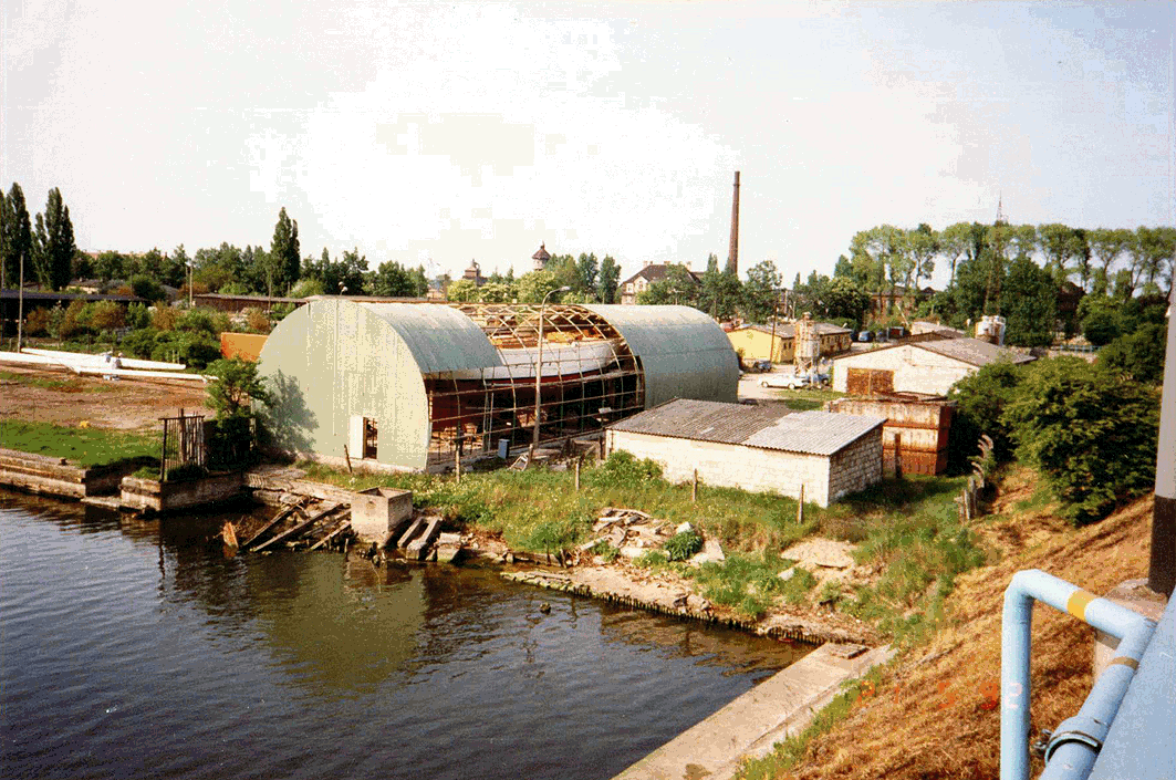 1991 Frühjahr Verkauf der C.C. Bau des White Eagle Rumpfes in Gdansk auf der berühmten Werft, deren Arbeiterinnen und Arbeiter mit Anna Walentinowicz und Lech Walesa als Sprechern eine Revolution gemacht hatten, Bilder hier